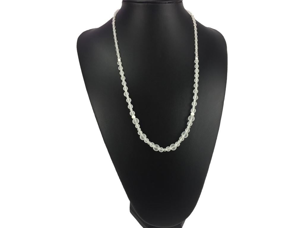 Diese seltene Schmuckvariante besteht aus 4 verschiedenen Größen mattierter Bergkristall Perlen und 3 verschiedenen Größen brillantierter Perlen in 925 Silber. Alle Bergkristall Perlen sind in hochwertiger AA-Qualität.