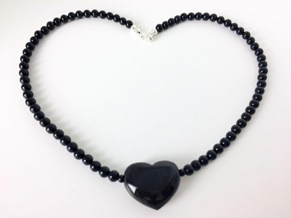 Beeindruckende Halskette mit kraftvollem Onyx Herz