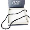 Diese klassische Onyx Kinderkette besteht aus 4 mm glatten Onyx Perlen in hervorragender AA-Qualität. Den Verschluss bilden Silberperlen und Schließe in 925-Sterlingsilber. Die Halskette ist für Mädchen und Jungs gleichermaßen gut geeignet und bei Jugendlichen sehr beliebt. Nach außen wirkt diese Onyx Variante cool, modern und sportlich. Onyx ist ideal für alle schulpflichtigen Kinder die mehr Selbstdisziplin, Durchsetzungskraft und Konzentration benötigen. Aufgrund seiner unaufdringlichen und angenehmen Energie kann er über einen langen Zeitraum getragen werden.