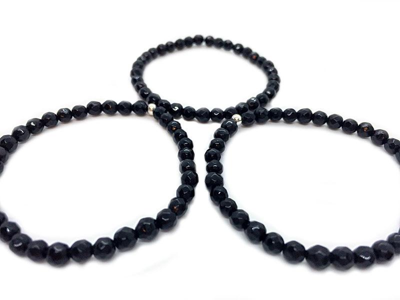 Ein kostbares Turmalin Schörl Armband aus 4 mm facettierten schwarzen Turmalin Perlen in ausgezeichneter A-Qualität. Schon als einzelnes Armband eignet sich dieser Armschmuck wunderbar als Kombination und/oder energetische Verstärkung zu den schwarzen Turmalin Halsketten von La`Kaja Men Collection. Um vollwertigen Ersatz einer Turmalin Halskette und somit den energetischen Effekt zu erreichen, benötigst Du von dieser Armband Variante 3-4 Stück. Die Kombination von 3-4 Armbändern sieht äußerst geschmackvoll aus und imponiert mit purer Eleganz – eine selbstbewusste Schmuckvariante für das männliche Handgelenk.