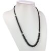 Eine wunderschöne Turmalin Schörl Variante mit einem Hauch von Nostalgie bestehend aus 4, 6 und 8 mm glatten Schörl Perlen in hervorragender A-Qualität und brillantierten Perlen in 925 Silber. Diese Halskette verbindet zeitlose Eleganz, Stil und Souveränität auf einer sehr vornehmen Weise. Ihre energetische Wirkung ist aufgrund der Größe, Qualität und Anordnung der Turmalin Kugeln sehr stark und somit als Einstiegskette ungeeignet. Hat sich Dein Körper aber erstmal an die Schwingung des Turmalins gewöhnt, trägt sich diese Kette äußerst angenehm.